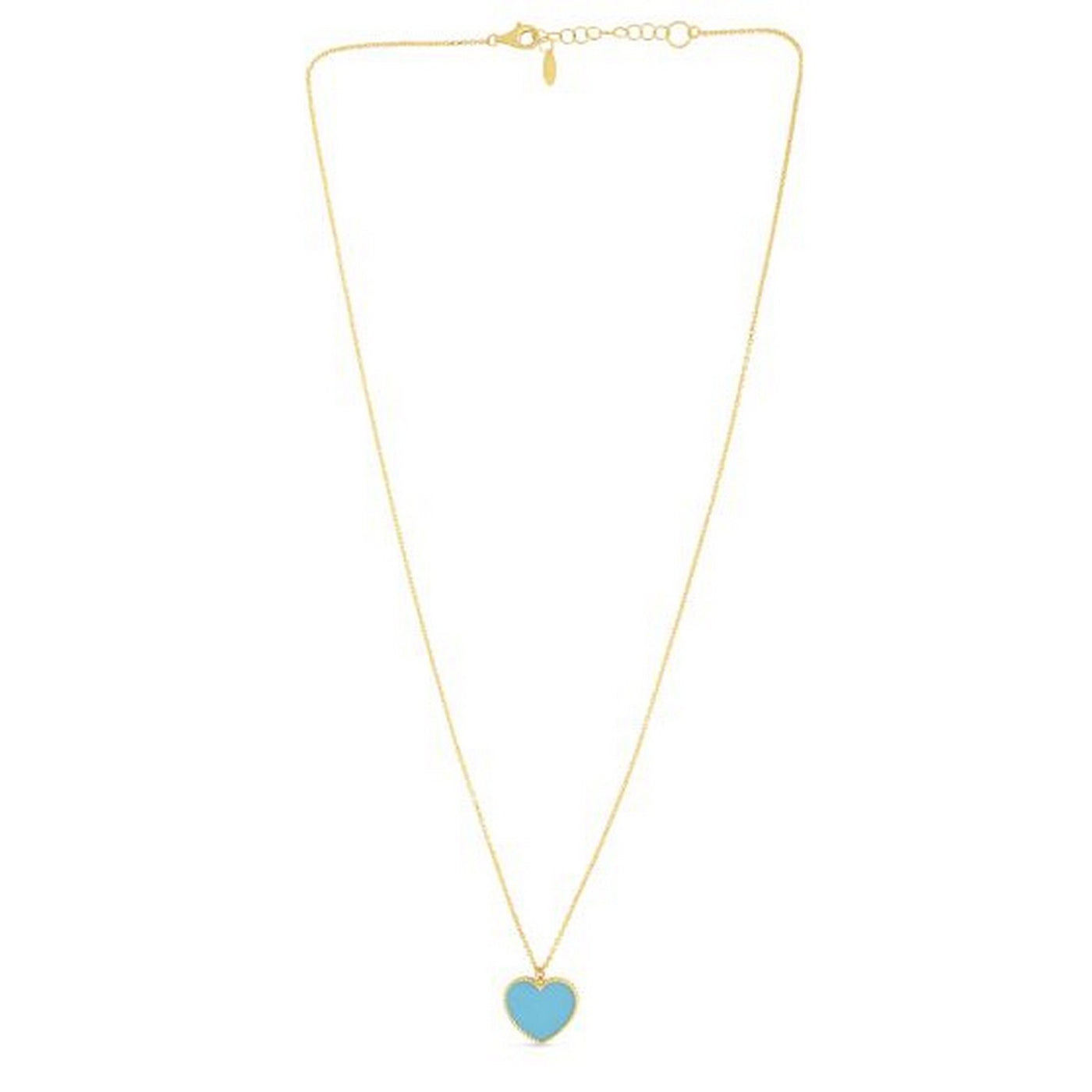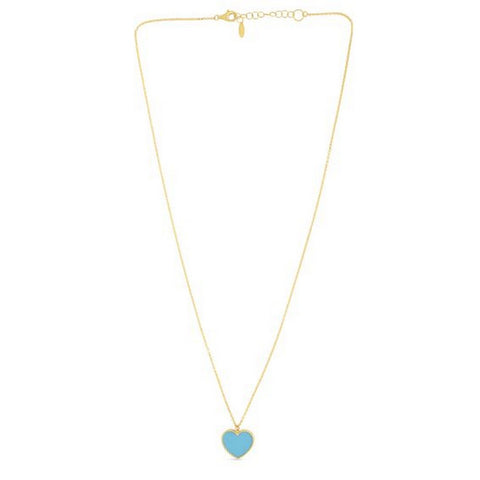 14k Yellow Gold High Polish Heart Turquoise Paste Necklace - 18'' / Yellow Gold