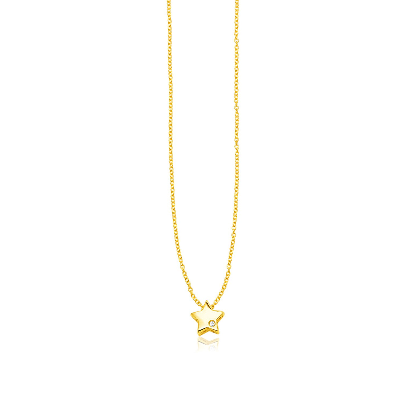 Like the brightest star in the night sky, this opulent 14k yellow gold necklace twinkles with a single gorgeous diamond. Necklace is 18 inches long and closes with a lobster clasp. Weight of diamond is .004ct.