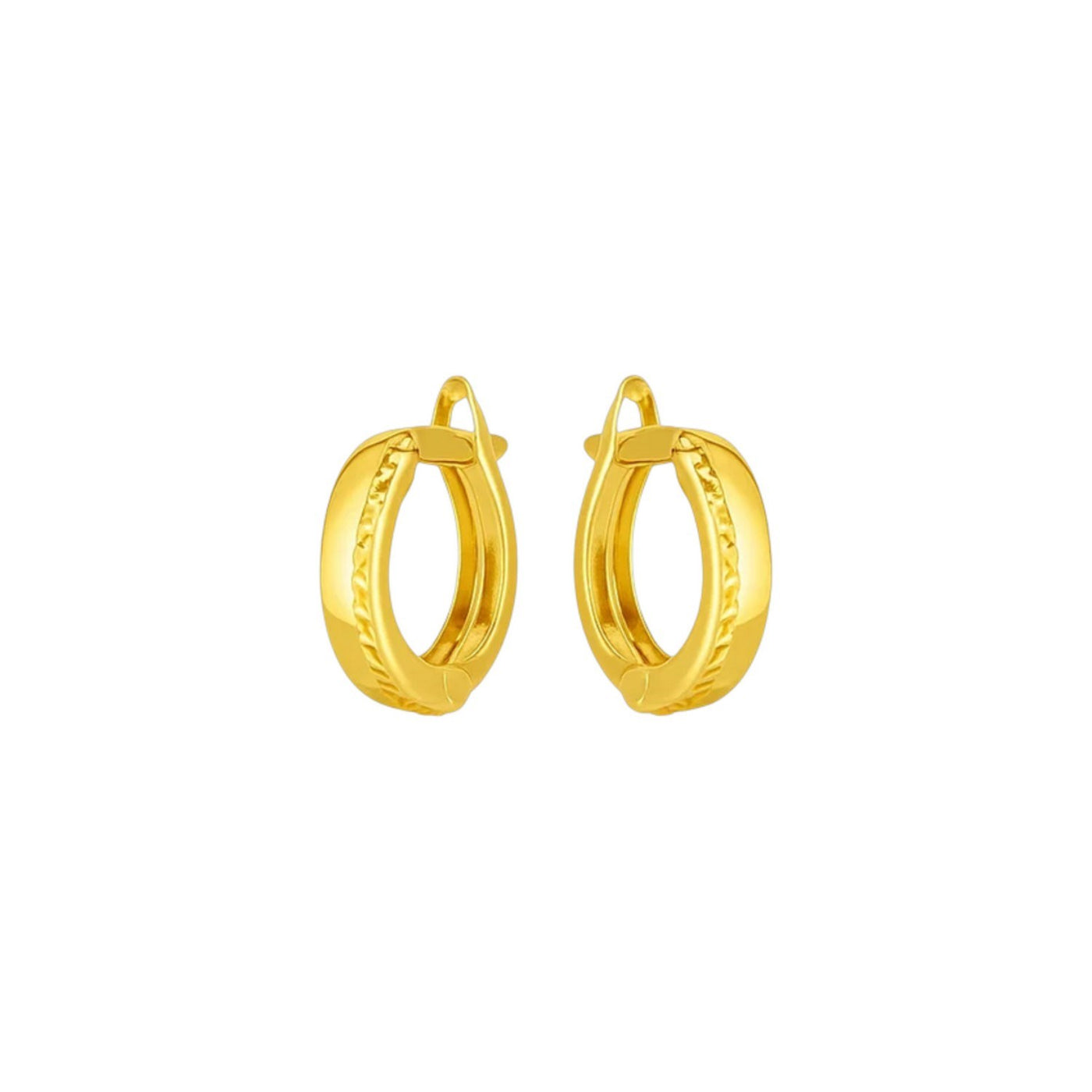 14k Yellow Gold Textured Huggie Hoops(3x10mm) - Yellow Gold