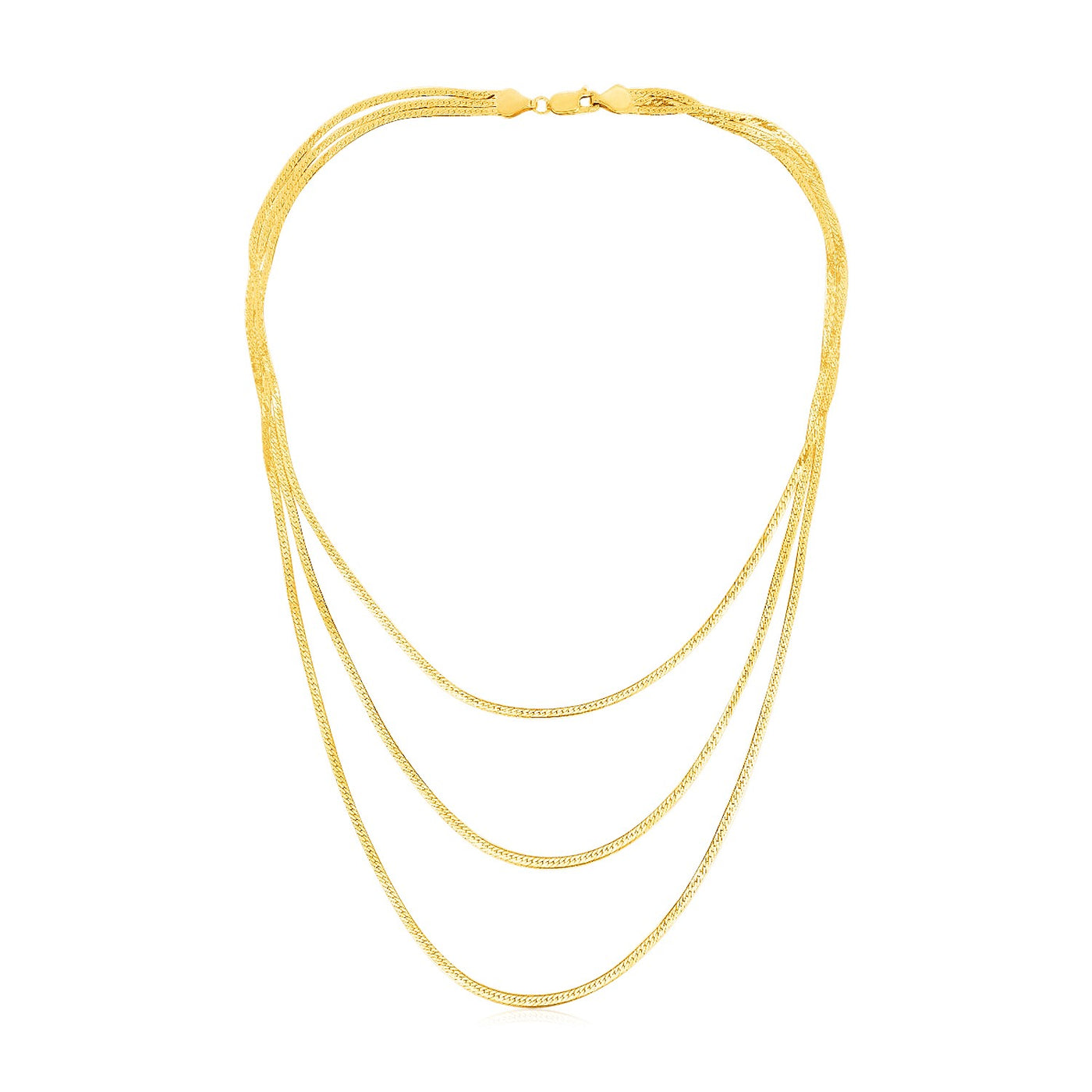 14k Yellow Gold Three Strand Herringbone Chain Necklace Sale