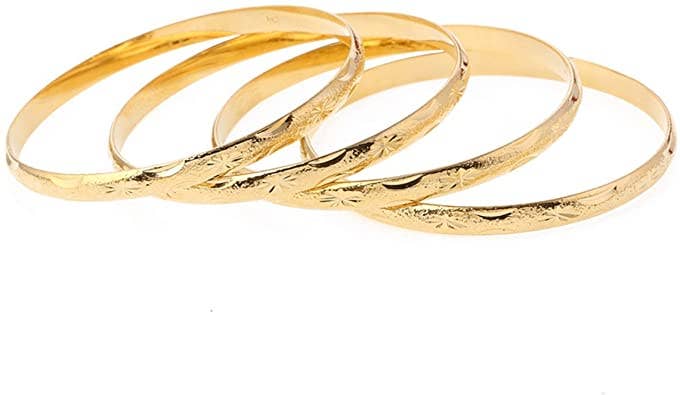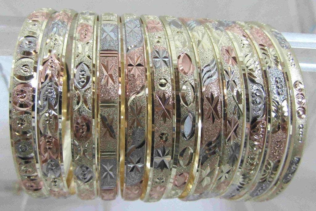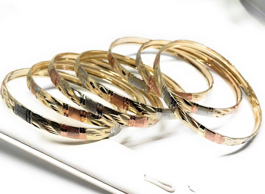 18k Gold Layered Real Gold-Filled Bangles Dozen 12pcs 6mm Sale