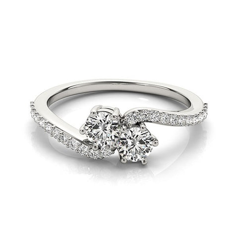 Curved Band Two Stone Diamond Ring in 14k White Gold (3/4 cttw) Sale