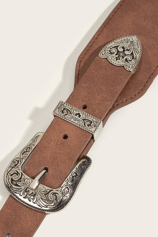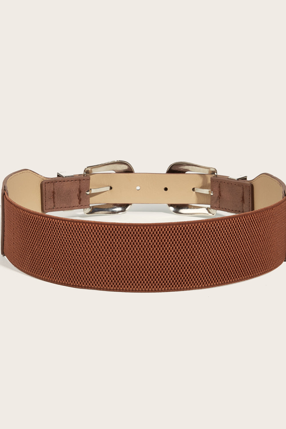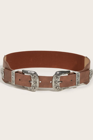 Inform when this item available: Double Buckle PU Leather Belt - Brown / S