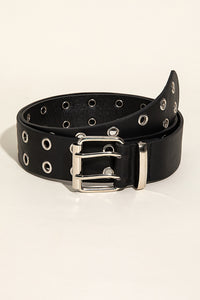 Double Row Grommet PU Leather Belt - Black / S