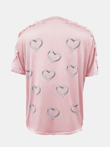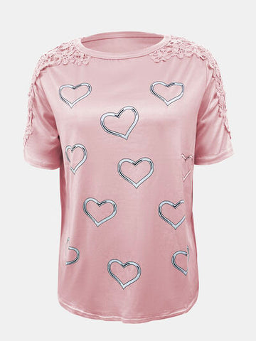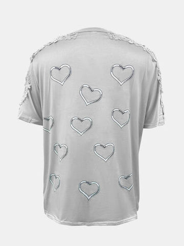 Full Size Lace Detail Heart Round Neck Short Sleeve Top Sale