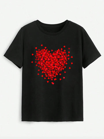 Heart Round Neck Short Sleeve T-Shirt Sale
