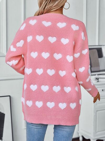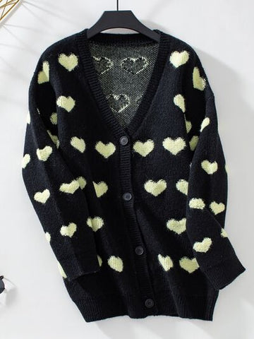 Heart V-Neck Button Up Long Sleeve Cardigan Sale