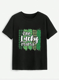 ONE LUCKY MAMA Round Neck T-Shirt Sale