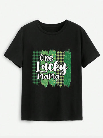 ONE LUCKY MAMA Round Neck T-Shirt - Black / S