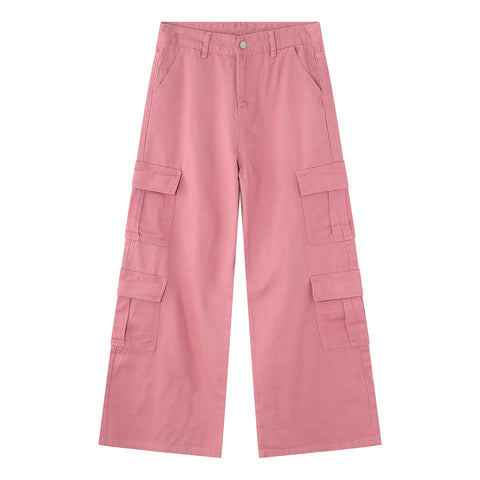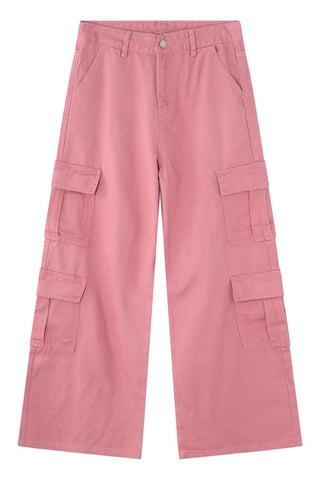 Wide Leg Cargo Jeans - Dusty Pink / XL